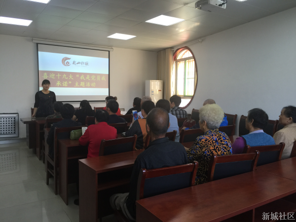 9月28日,龙山社区在社区会议室召开了“喜迎十九大 我是党员我承诺”主题活动,社区党支部为党员们精心设计了党员承诺书, 活动当天,社区党员们郑重其事地在承诺书上写道:一切听从党的召唤、严格按照党员标准要求自己,积极参加党员活动、无条件为社区居民服务、争当文明志愿者等。十指连心志愿者党员杨忠同志写道:关心群众生活,我志愿长期帮助社区九十岁独居老人。老党员们发自肺腑的承诺让在场的各位深深地感动。大家将写好的承诺书亲手张贴在承诺公示栏上,将在社区进行公示接受党员和群众的监督。
